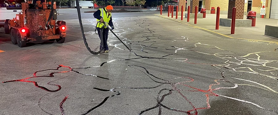 Cracks in pavements occur when the stress on the surface layer exceeds its tensile or shear strength, causing cracks to form. Our crack filling services are designed